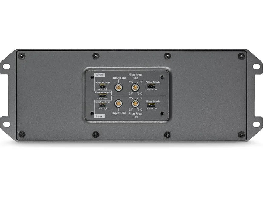 Other features include independent front and rear crossovers with selectable full-range, high-pass or low-pass filter controls and a dual-range input section that accepts a wide range of input voltage levels, from line-level all the way to high-power speaker level signals.