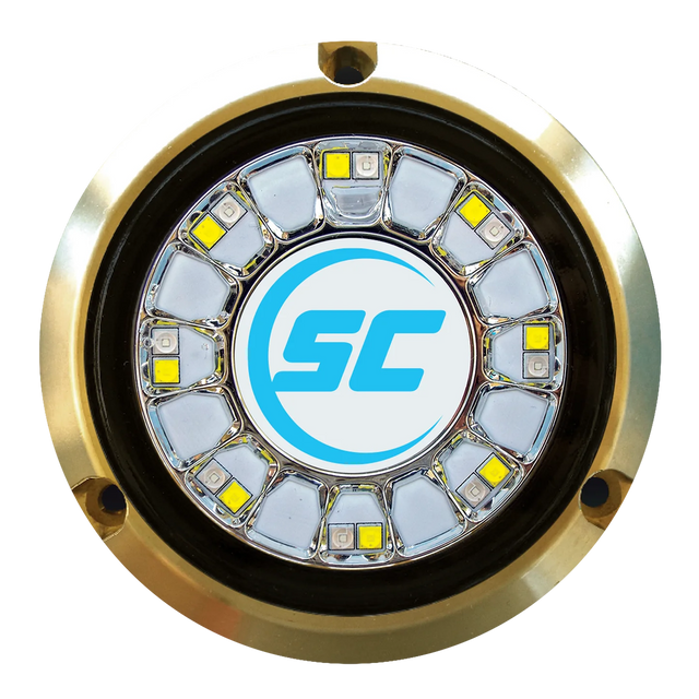 The SCR-16 is a 16 LED round underwater marine light and provides your vessel with 60 watts of intense LED lighting. The SCR-16’s are designed within a compact 4″ diameter bronze housing for under waterline surface mounting. Single or two-color versions available with variable brightness and a wide array of control options.