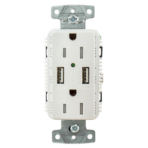 Upgrade your power infrastructure with this hybrid outlet that seamlessly integrates standard 120V/15A electrical service alongside modern USB connectivity. The dual Type A USB ports supply 5V at 5 amps, allowing you to charge two devices simultaneously without occupying additional wall space. Built to commercial-grade specifications with tamper-resistant safety features, this duplex-compatible unit fits standard electrical boxes for straightforward installation in marine, residential, or industrial applications where versatile power access is essential.