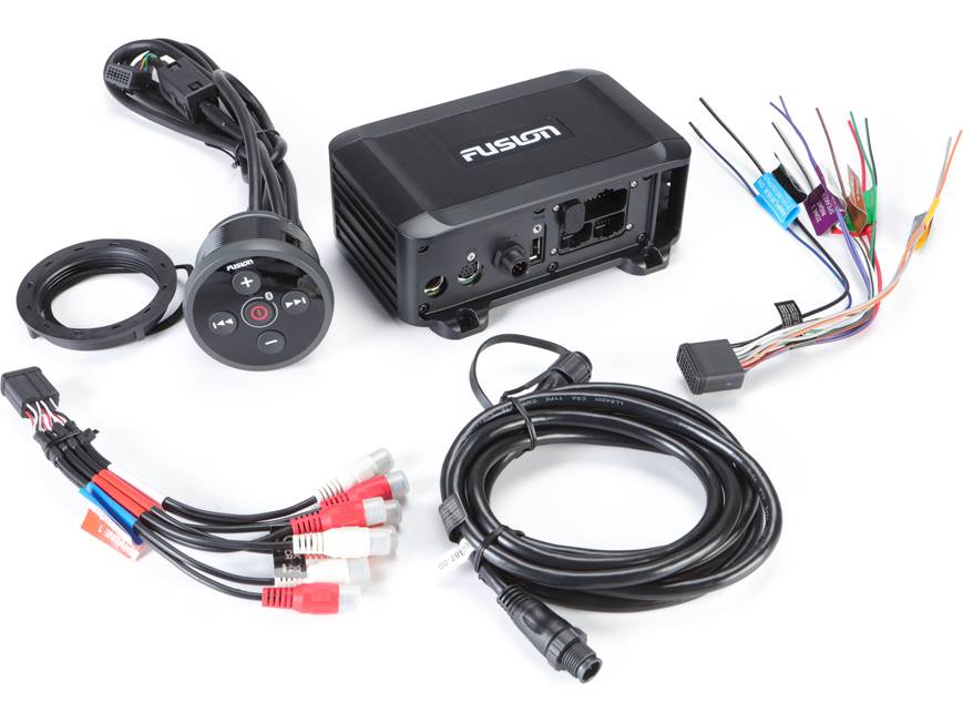 Introducing the MS-BB100, a compact black box entertainment solution that incorporates the marine industry supported FUSION-Link protocol and FUSION's proven marine engineering skillset to deliver a boat load of tunes. An industry first, the BB100 includes an easy touch Bluetooth embedded IPx7 waterproof remote for quick audio adjustments. Supplied with a 2 Mtr (6.6Ft) connection cable, the wired remote is ideally shaped for hassle free installation onto a dash or boat console. With the Bluetooth receiver embedded into the remote we can reduce the likelihood of interference occurring between your smartphone and the receiver. Engineered for either dash or flush mount installation, you choose the finish to suit your vessel.