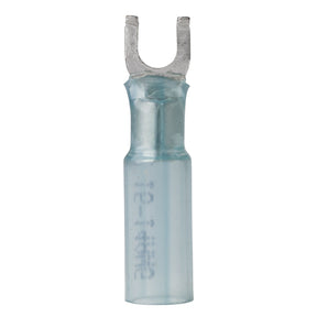 Built for marine environments, these Ancor 16-14 AWG heat shrink spade terminals with #10 studs feature tinned copper for corrosion protection and pure copper conductivity for efficient current delivery. The brazed seam design withstands vibration and mechanical stress. Integrated heat-activated adhesive seals the connection against moisture when heated, offering exceptional strain relief and durability. UL listed and CSA recognized for assured performance. 25-pack suitable for targeted repairs, upgrades, and smaller electrical projects.