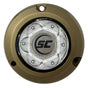 The SC2 - Great White is a surface-mount underwater fixture featuring white LED technology housed in durable bronze construction. The scratch-resistant tempered glass lens withstands the abrasive conditions of marine environments without optical degradation. Its proprietary gel-filled architecture is injected throughout the entire assembly, creating a comprehensive moisture seal that prevents condensation and water intrusion even under high-stress operational scenarios. Thermal throttling technology ensures safe performance when the unit operates outside water, protecting internal components from heat damage. The fixture accommodates a wide range of control interfaces—from basic on-off switching to sophisticated multi-effect lighting sequences—providing flexibility for custom marine lighting installations and system integration.