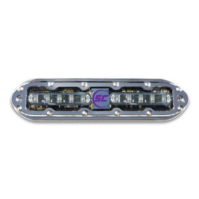 The SCM-10 Ultra Blue LED underwater light produces 42 watts of power delivering up to 4,000 lumens of mesmerizing ultra blue illumination that appears almost purple, creating a distinctive visual signature for nighttime underwater operations and premium aesthetic appeal. The proprietary clear-gel-filled design is injected throughout the entire unit, forming a comprehensive moisture barrier that resists saltwater corrosion and maintains performance in harsh marine environments. A tough polycarbonate lens provides superior optical clarity while withstanding impact and UV degradation. Intelligent thermal throttling technology enables safe operation even during accidental air exposure, protecting internal components during installation and service procedures. The housing utilizes passivated stainless steel 316, delivering exceptional corrosion resistance and structural durability in aggressive saltwater conditions.