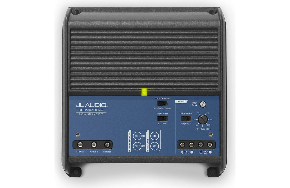 El XDM200/2 es adecuado para instalaciones en automóviles o embarcaciones, está fabricado con materiales de calidad marina y cuenta con un exclusivo filtro de entrada de modo dual para un rendimiento sin ruidos en embarcaciones o automóviles. La capacidad de encendido automático (a través de detección de señal o detección de compensación de CC) también está incorporada para facilitar las actualizaciones del sistema de fábrica.