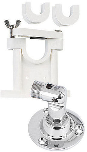 Combines the Style 81-S Swivel Mount with the Shakespeare Style 408-r molded upper bracket. The bracket features an insert to accept 1in, 1 1/8in or 1 1/2in diameter antennas or extension masts. Now includes a new 11/8in insert!