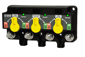 Replaces Three Individual High Amp Relays with One Compact Module reducing space significantly, eliminating cost of external link cable connections, eliminating risk of link cable connections vibrating loose, and providing clear unambiguous awareness of how operate manual controls and what state the manual controls have forced the relay into..