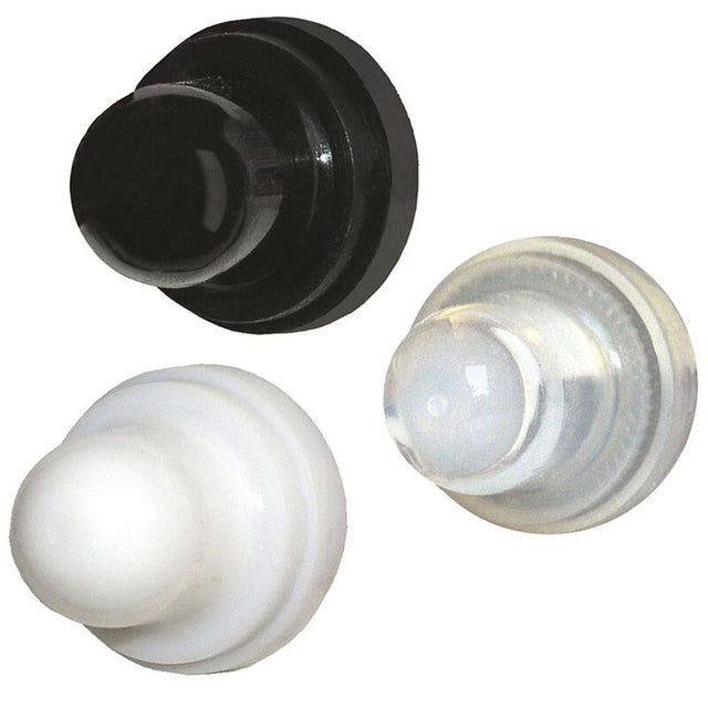 Los interruptores automáticos con pulsador se pueden utilizar para todo tipo de aplicaciones, en un panel o por sí solos. Reemplace la tuerca de montaje por una que incluya una funda resistente a los rayos UV para brindar un nivel adicional de protección a los interruptores montados en ubicaciones expuestas. Elija entre transparente, negro y blanco para combinar con los interruptores o disyuntores circundantes. Los paneles de interruptores automáticos WeatherDeck de Blue Sea Systems utilizan esta misma funda para lograr su clasificación IP67; si una de las fundas del interruptor falla, reemplácela, no todo el panel. Simplemente retire la cubierta y el interruptor, luego reemplace la tuerca de fijación y vuelva a instalar el interruptor y la cubierta.