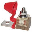 Los bloques de fusibles de terminales brindan protección al circuito al conectar un bloque de fusibles directamente al terminal de la batería. Simplemente fije un bloque de fusibles simple o doble al terminal de la batería, seleccione el fusible apropiado y conecte los conductores. Ideal para la protección del circuito cuando el espacio es limitado. Los fusibles están disponibles desde 30 A hasta 300 A para cumplir con los requisitos del circuito. Una cubierta integral se ajusta sobre el perno del terminal para evitar el contacto accidental con el terminal.