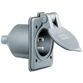 This 15A 125V power inlet features a standard 5-15P configuration with 2-pole 3-wire grounding for safe electrical integration on marine vessels and RVs. The weatherproof flip lid and boot covers protect terminals from saltwater spray, moisture, and environmental degradation—critical for extended offshore or coastal operation. Nickel-plated brass blades resist corrosion and maintain reliable conductivity over years of use, while multiple drive screws ensure secure mounting that withstands vibration and movement. Designed to meet demanding marine electrical standards, this inlet provides dependable shore power connectivity with maximum protection against the elements.