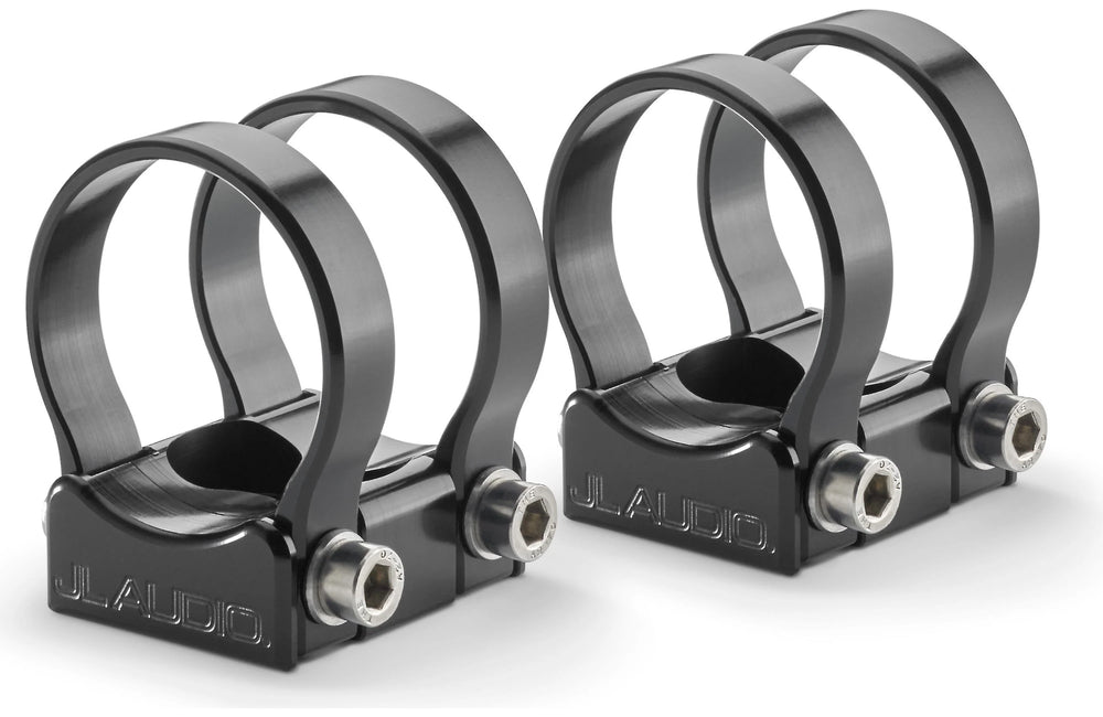 Low-profile, machined mounting fixtures provide rock-solid attachment points for the VeX™ Enclosed Systems to a variety of roll cage diameters. They feature the JL Audio name logo machined in the side. Each mounting fixture set is designed to mount two VeX™ Pods.