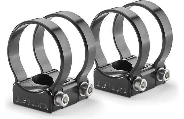 Low-profile, machined mounting fixtures provide rock-solid attachment points for the VeX™ Enclosed Systems to a variety of roll cage diameters. They feature the JL Audio name logo machined in the side. Each mounting fixture set is designed to mount two VeX™ Pods.