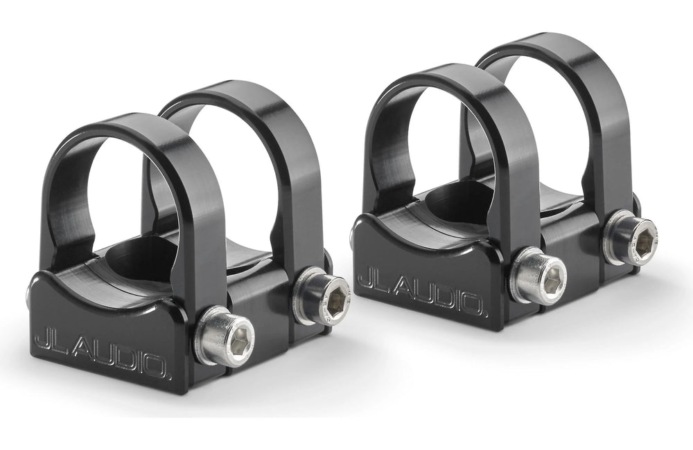 Low-profile, machined mounting fixtures provide rock-solid attachment points for the VeX™ Enclosed Systems to a variety of roll cage diameters. They feature the JL Audio name logo machined in the side. Each mounting fixture set is designed to mount two VeX™ Pods.