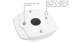 Mounting holes pick up existing radar brands mentioned previously and the new Simrad Halo open array.